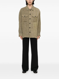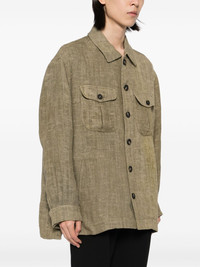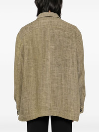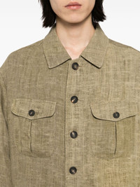 button-up shirt jacket Highlights - Olive green - Front button fastening - Two button-fastening chest pockets - Two side inset pockets - Buttoned cuffs Imported Composition Cotton 100% Lining: Cupro 100% Outer: Linen/Flax 100% SIZE & FIT Model measurements Height 6 ft 2 in(1.87 m) Bust/Chest 33.07 in(84 cm) Hips 35.43 in(90 cm) Waist 26.77 in(68 cm) FittingInformation Designed for a relaxed fit, this piece allows for comfort and movement when worn Constructed with additional length on the sleeve Made from a midweight non-stretch fabric Washing instructions Dry Clean Only