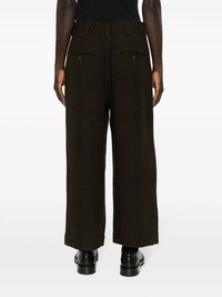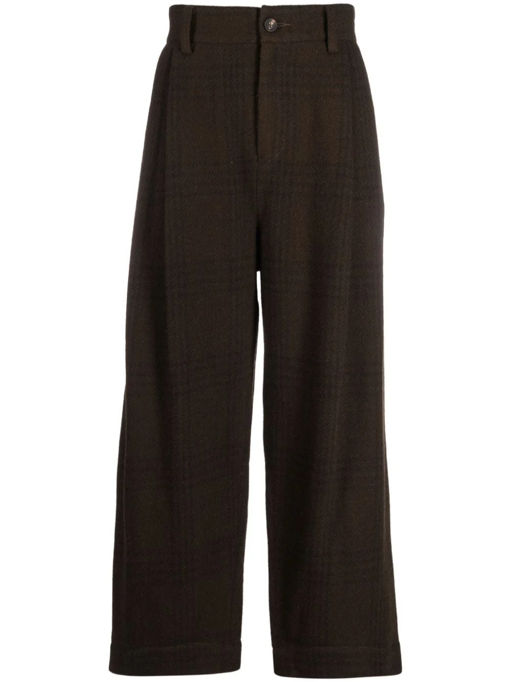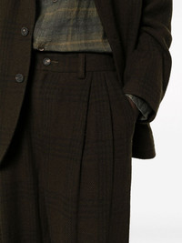 plaid-check wide-leg trousers Highlights - Khaki - Wool - Plaid check pattern - Pleat detailing - Belt loops - Front button and zip fastening - Wide leg - Two side inset pockets - Two rear button-fastening jetted pockets - Straight hem - Ankle-length Imported Composition Outer: Wool 100% Lining: Cotton 100%, Cupro 100% SIZE & FIT Model measurements Height 6 ft 2 in(1.87 m) Bust/Chest 36.41 in(92.5 cm) Hips 37 in(94 cm) Waist 29.52 in(75 cm) FittingInformation Designed with a wide leg, offering a loose and roomy fit Made from a midweight non-stretch fabric This piece fits true to size – take your usual size Washing instructions Dry Clean Only