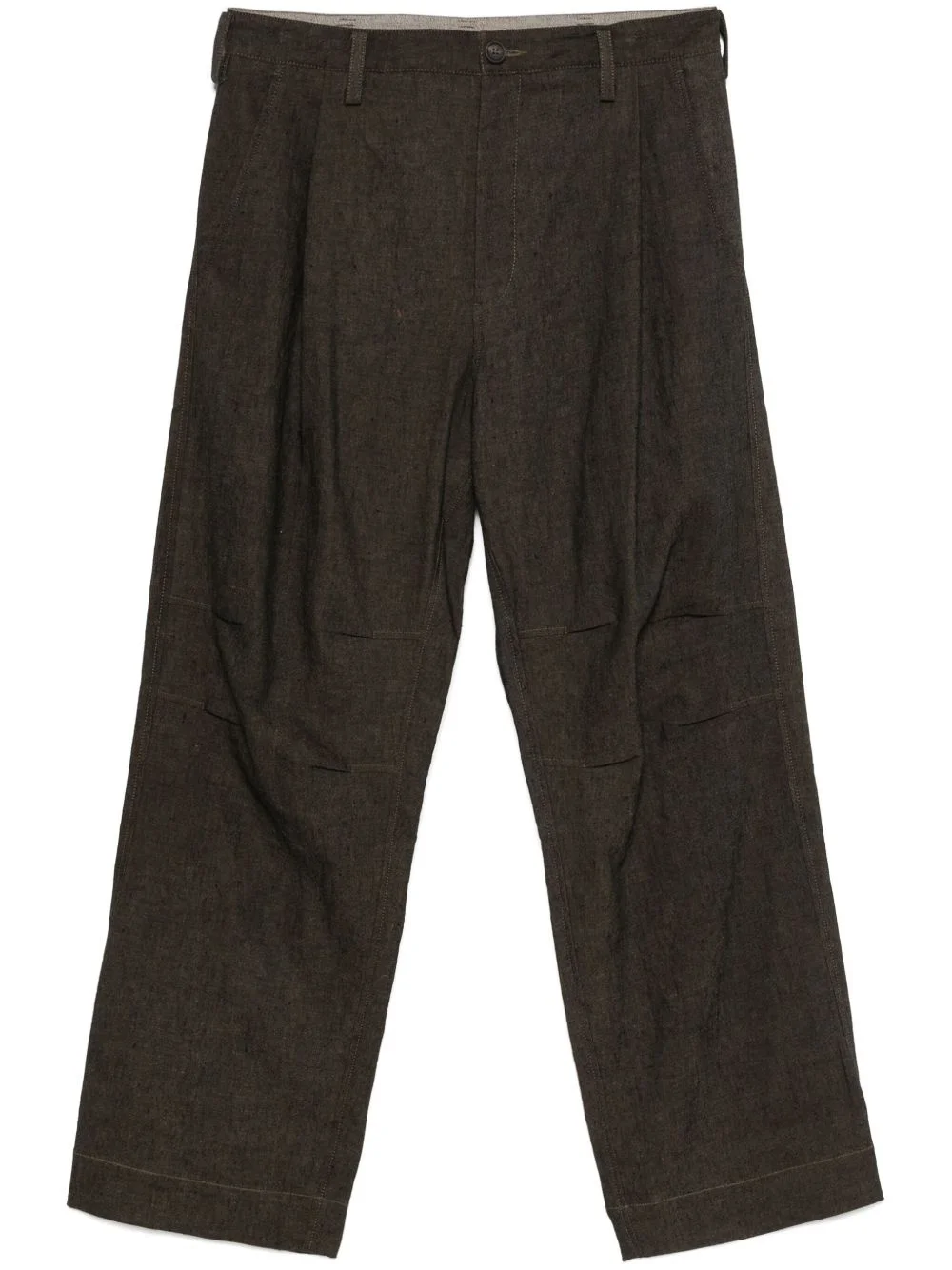 pleat-detail trousers Highlights - Taupe brown - Front button and zip fastening - Two side slash pockets - Two rear patch pockets - Belt loops Imported Composition Lining: Cotton 100%, Cupro 100% Outer: Cotton 95%, Elastane 5%