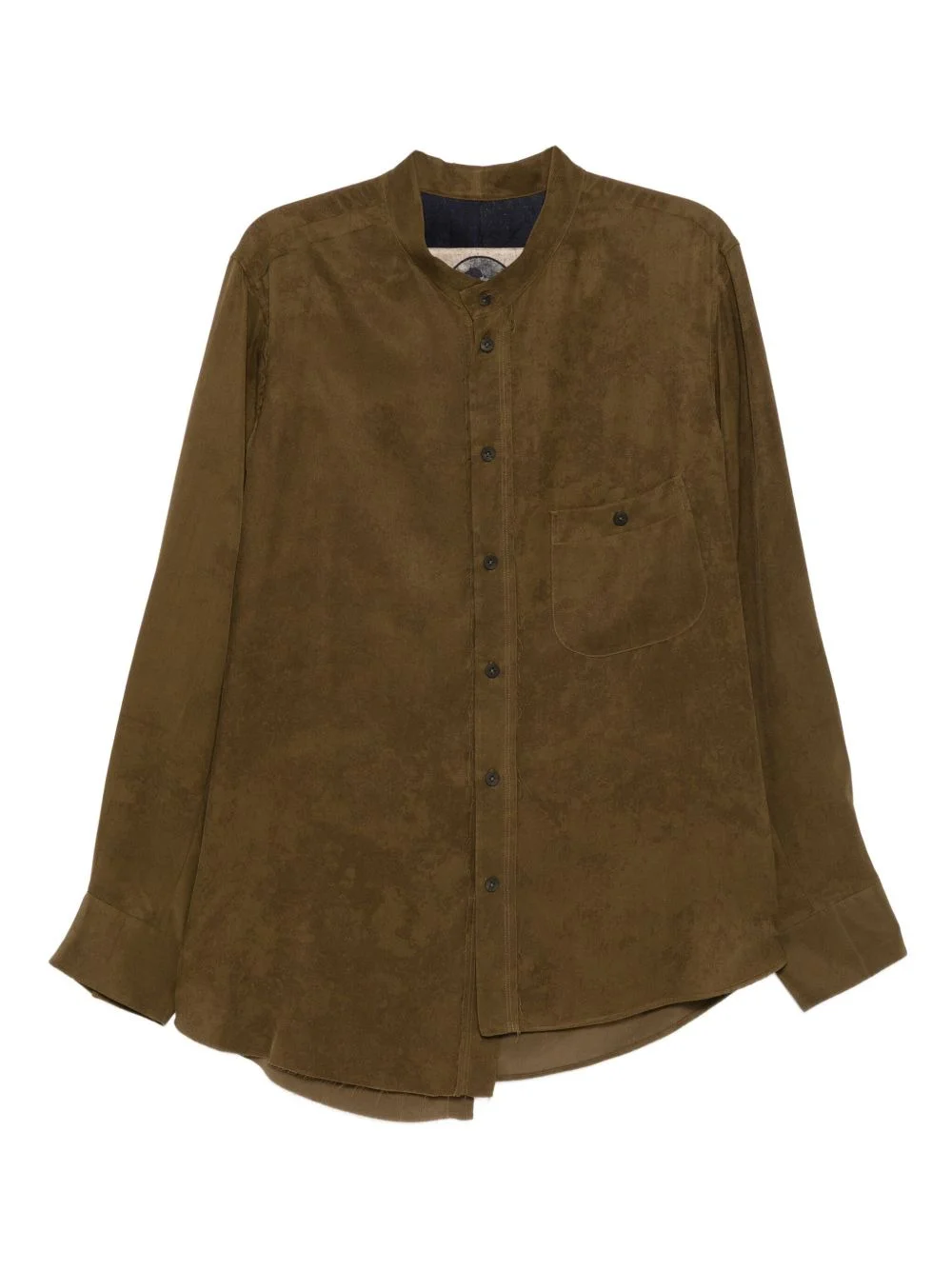 silk shirt Highlights - Khaki green - Front button fastening - Chest patch pocket - Buttoned-cuff sleeves Imported Composition Silk 100% SIZE & FIT Model measurements Height 6 ft 2 in(1.88 m) Bust/Chest 33.46 in(85 cm) Hips 36.22 in(92 cm) Waist 27.55 in(70 cm) FittingInformation Designed to be unstructured, offering a loose fit throughout Made from a lightweight non-stretch fabric Washing instructions Dry Clean Only