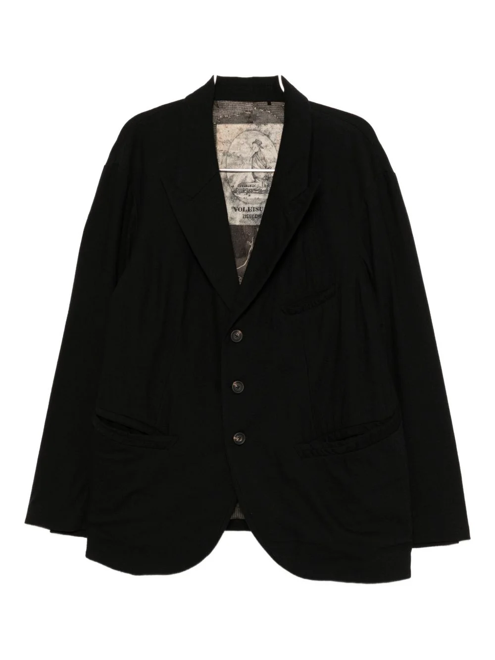 single-breasted blazer Highlights - Black - Front button fastening - Chest welt pocket - Two side welt pockets Imported Composition Outer: Virgin Wool 54%, Cotton 46% Lining: Cotton 100% SIZE & FIT Model measurements Height 6 ft 2 in(1.87 m) Bust/Chest 33.07 in(84 cm) Hips 35.43 in(90 cm) Waist 26.77 in(68 cm) FittingInformation Designed to be unstructured, offering a loose fit throughout The vented hem offers movement at the rear Made from a midweight non-stretch fabric Washing instructions Dry Clean Only