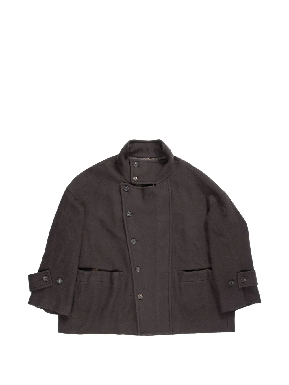 stand collar short coat Highlights - Grey - Stand collar - Front button fastening - Flap pockets - Buttoned cuffs - Cotton Imported Composition Cotton 100% Washing instructions Read Manufacturer Guidelines