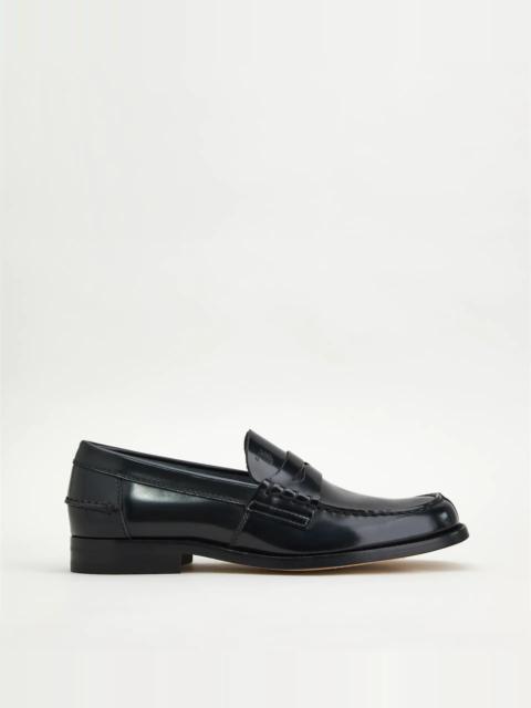 Camp-Collar Logo-Embossed Leather Shirt Black