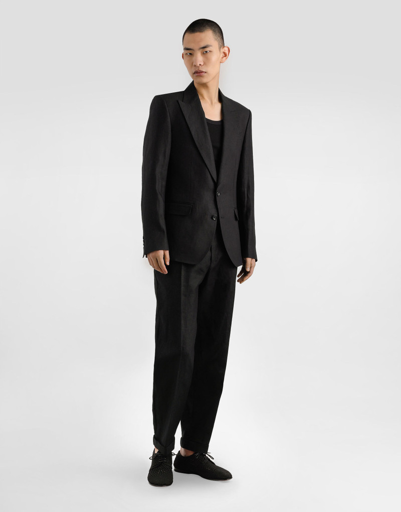 WASHED COTTON-LINEN VELVET PANTS WITH JACQUARD HEMS