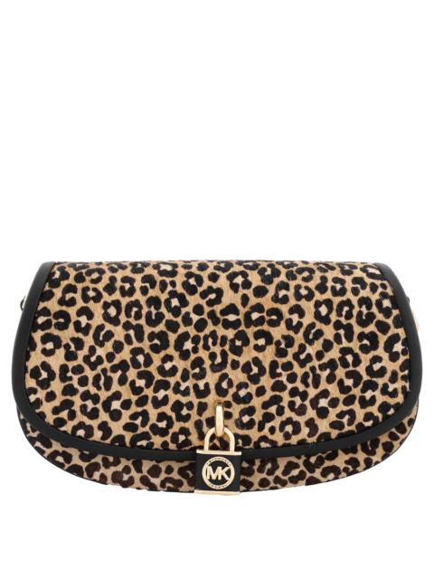 Michael Kors Leopard Pattern Logo Padlock Small Shoulder Bag