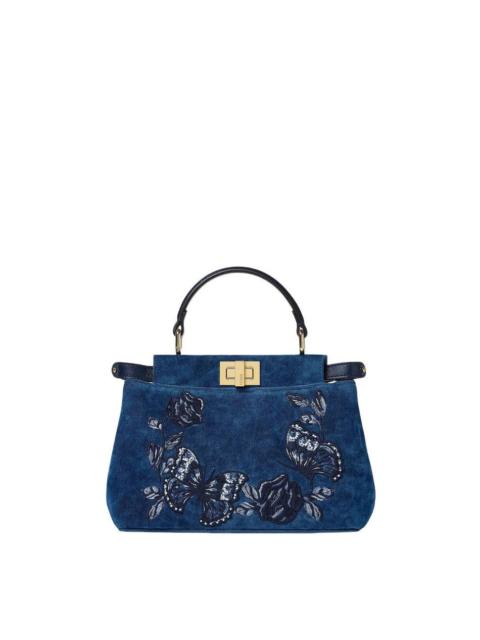 FENDI Peekaboo Mini $5450 Blue Denim Embroidery Top Handle B