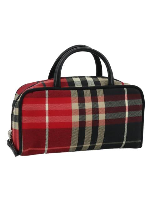 Burberry Nova Check Hand Bag Canvas Leather Beige Gold Red