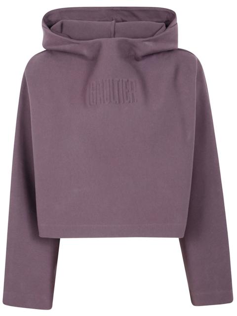 Jean Paul Gaultier Women Bonded Cotton Cropped Bat Sleeves Hoodie With "Gaultier" Embossing