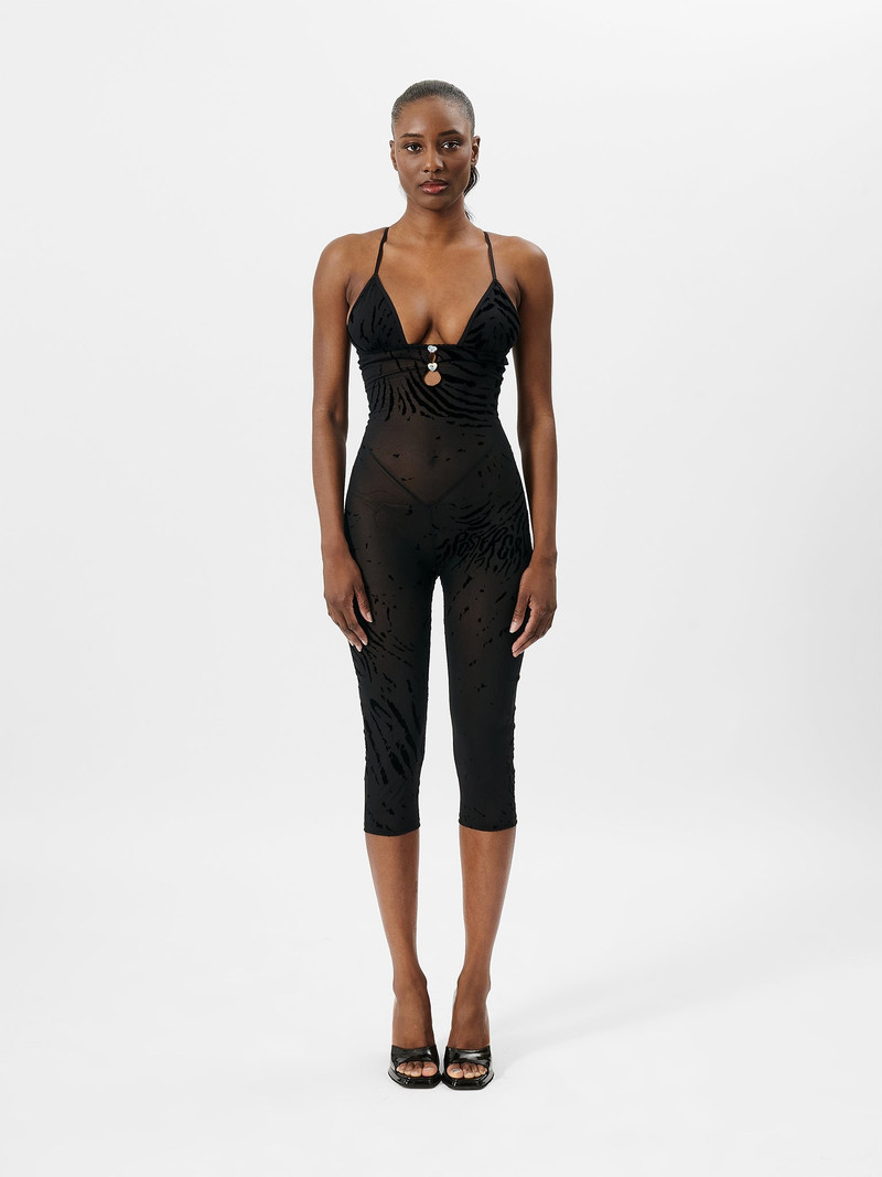 SCARLETT PEDAL PUSHER JUMPSUIT BLACK ZEBRA PRINT