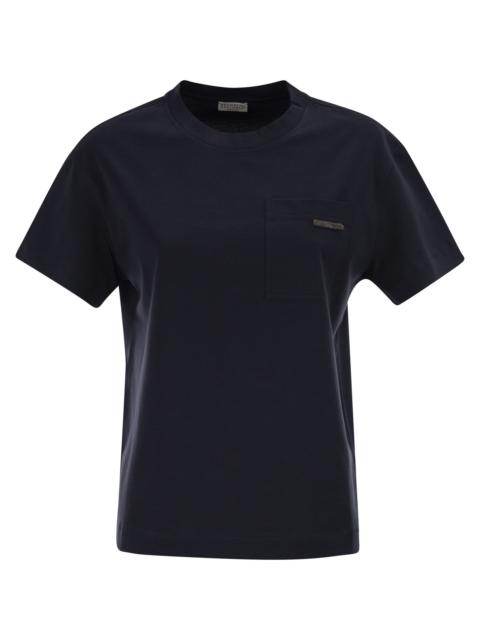 Brunello Cucinelli Women Cotton Jersey T-Shirt With Shiny Tab