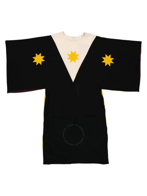 Burberry Ladies Black Geometric Print Silk Crepe De Chine Cape Sleeve Dress