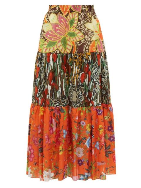 Patchwork-design Printed Long Skirt