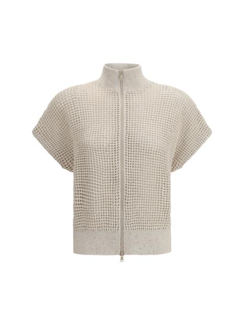 Brunello Cucinelli Women Cotton Mesh Cardigan With Dazzling Details
