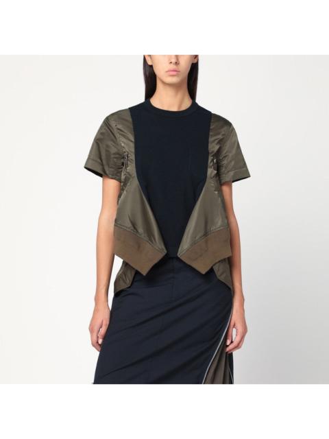 Sacai Navy/Kaki Cotton And Nylon T-Shirt Women