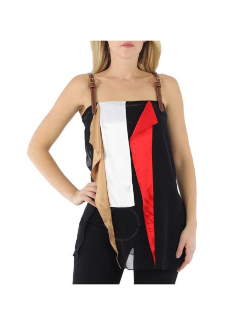 Burberry Black Leather Detail Colour Block Silk Top