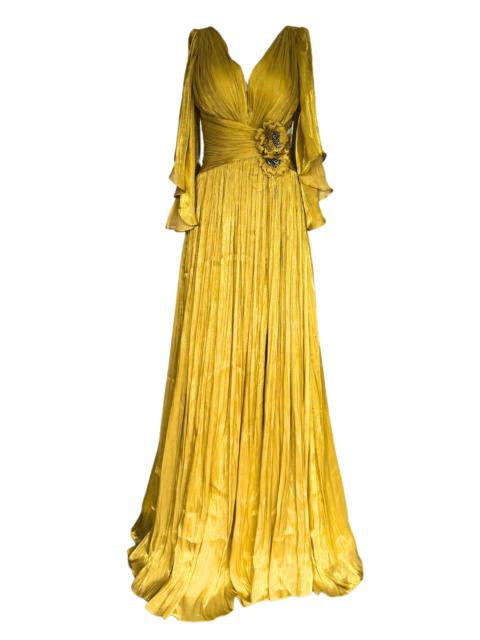 Elegant Chiffon Evening Dress Gown with Floral Brooch (Copy)