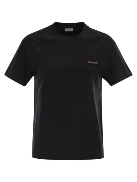Brunello Cucinelli Women Cotton Jersey T-Shirt With Shiny Tab
