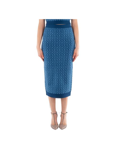 Fendi Logo Pattern Midi Drape Wool Skirt
