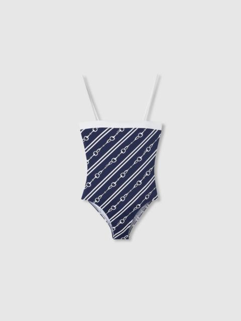 Burberry Blue TB Monogram Print One-Piece Swimsuit
