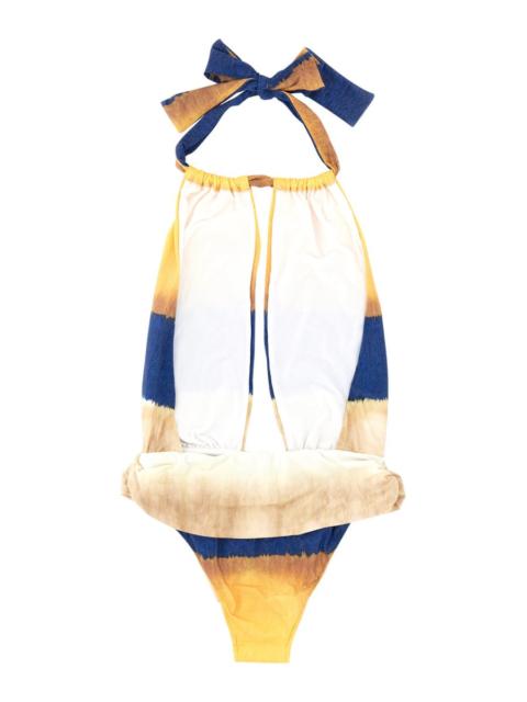 Fendi Women Beige Reversible Swimsuit With V Neck And All-Over Striped Motif In Tech Fabric Stretch