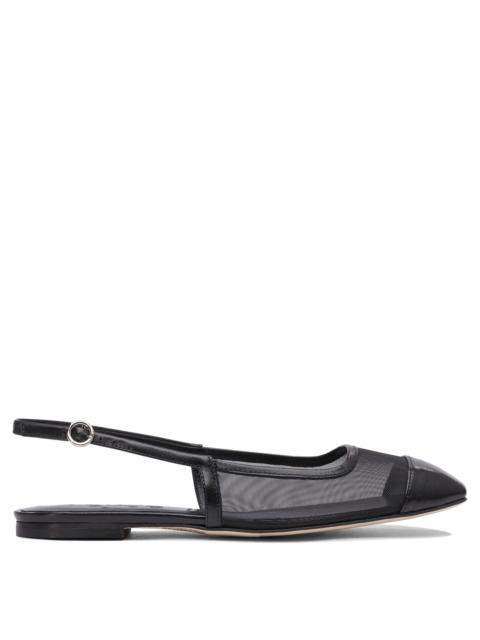 Leather-trimmed fishnet ballet flats