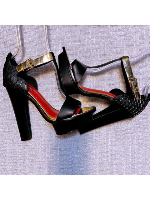 Vintage CHARLES JOURDAN PARIS Open Toe Leather T-Strap Platform High Heels Black