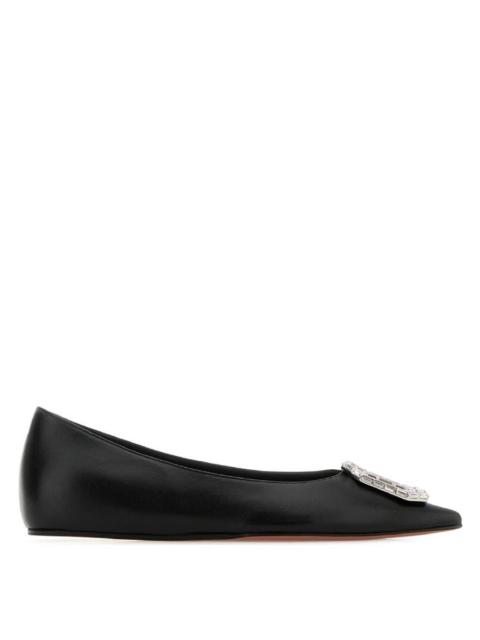 Amina Muaddi Nappa Black Camelia Ballet Flats