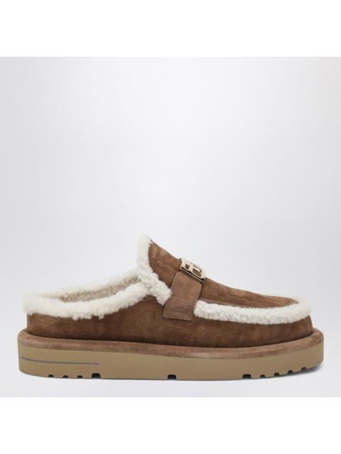 Fendi Brown Ff Suede And Shearling Apres Chic Sabots Women