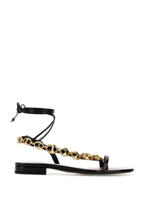 Gucci Women Black Leather Gucci Marina Chain Sandals