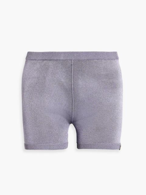 Embellished metallic stretch-knit shorts