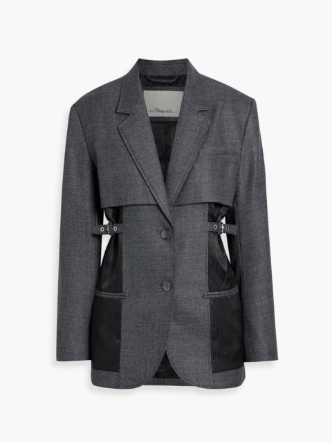 Pinstriped satin-paneled twill blazer