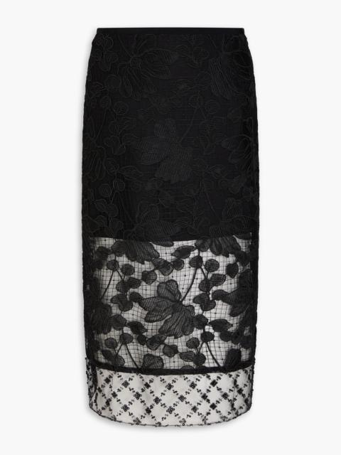 Sequin-embellished corded lace midi skirt