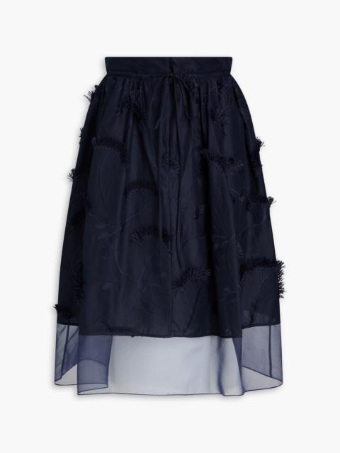 Embroidered fil-coupé cotton-organza midi skirt
