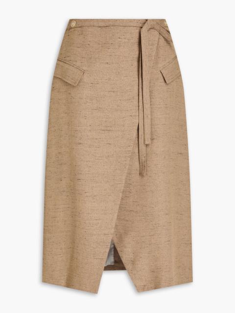 Wrap-effect wool-blend midi skirt