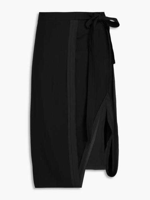 Wrap-effect crepe midi skirt