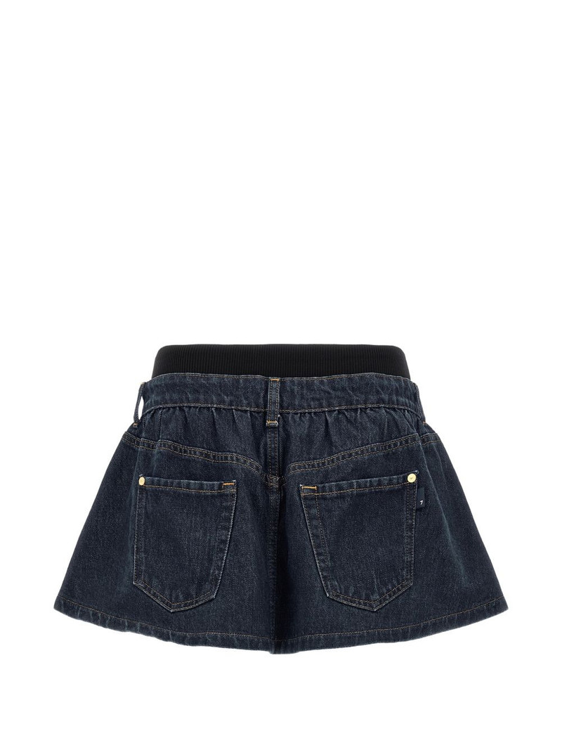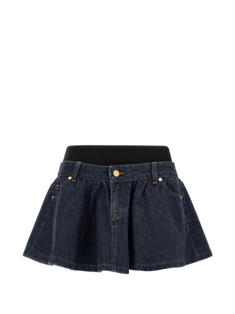 banded contrast-stitching mini denim skirt