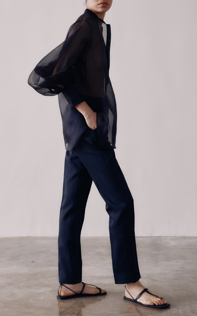 Balloon Sleeve Silk Organza Shirt brown