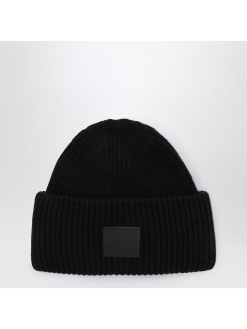 Acne Studios Black Large Face Logo Beanie - Yak Women