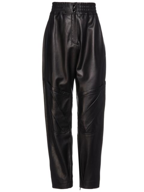 Pleated leather tapered pants