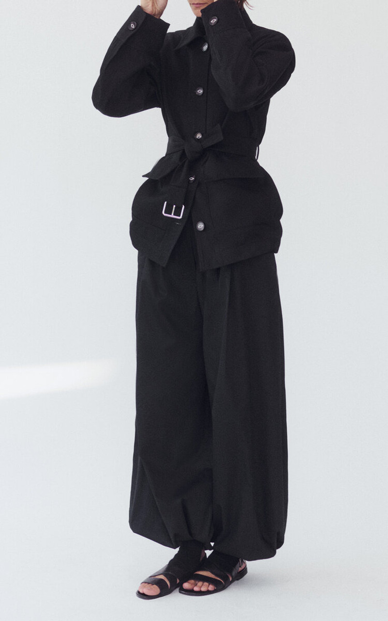 Belted Cotton-Twill Barn Jacket black