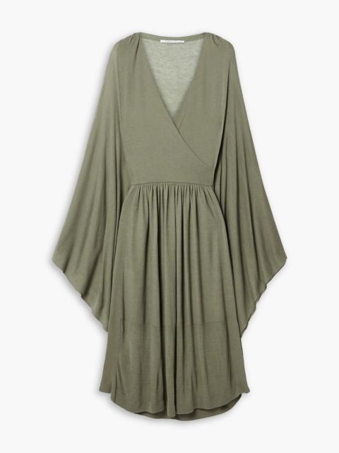 Wrap-effect draped stretch-knit midi dress