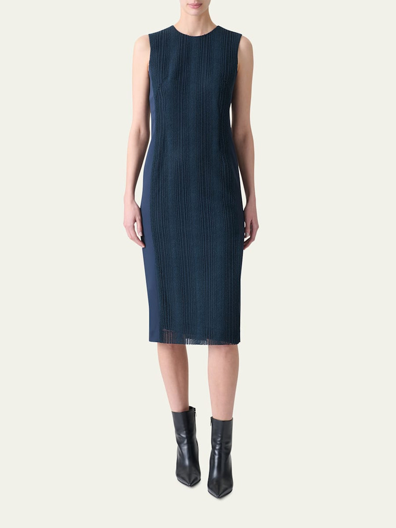 Organdy Plaid Sleeveless A-Line Midi Dress With Belt