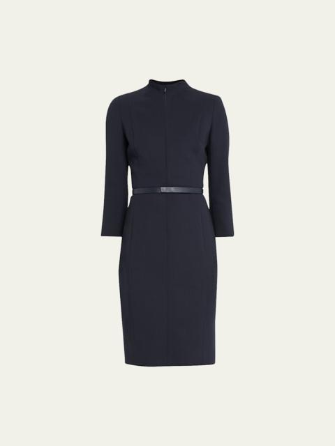 Short-Sleeve Nappa Leather Belted Shirtdress