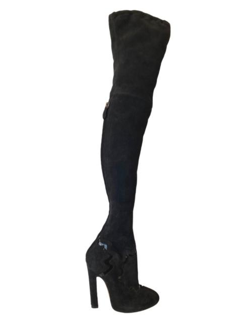 Thigh High Black Leather Studded Boots