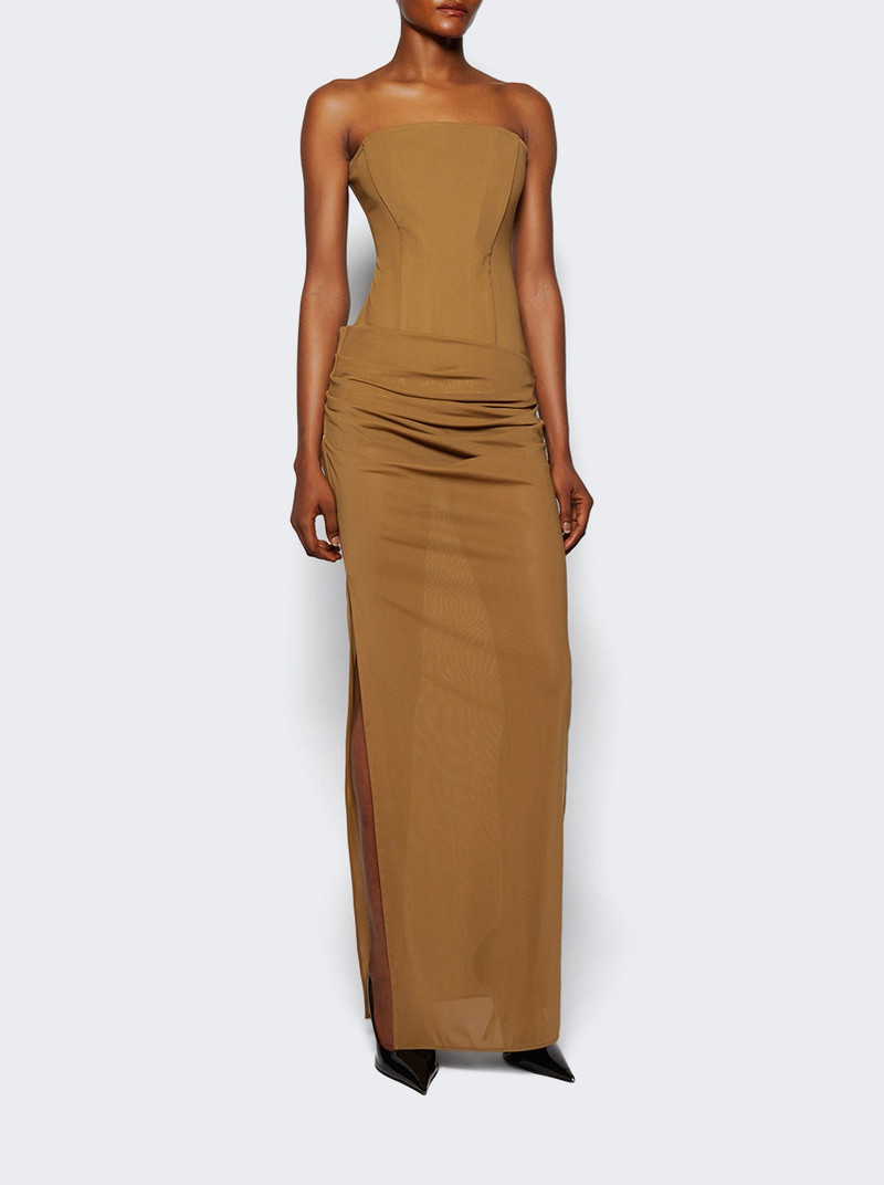Strapless Longline Corset Column Khaki