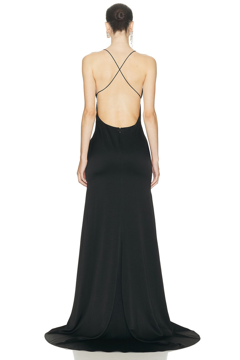 Long Sleeve Mermaid Satin Crepe Paneled Gown