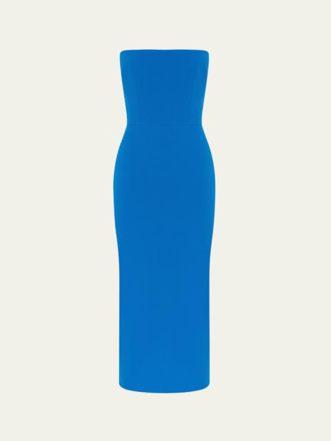 Bow Satin Crepe Long-Sleeve Midi Dress