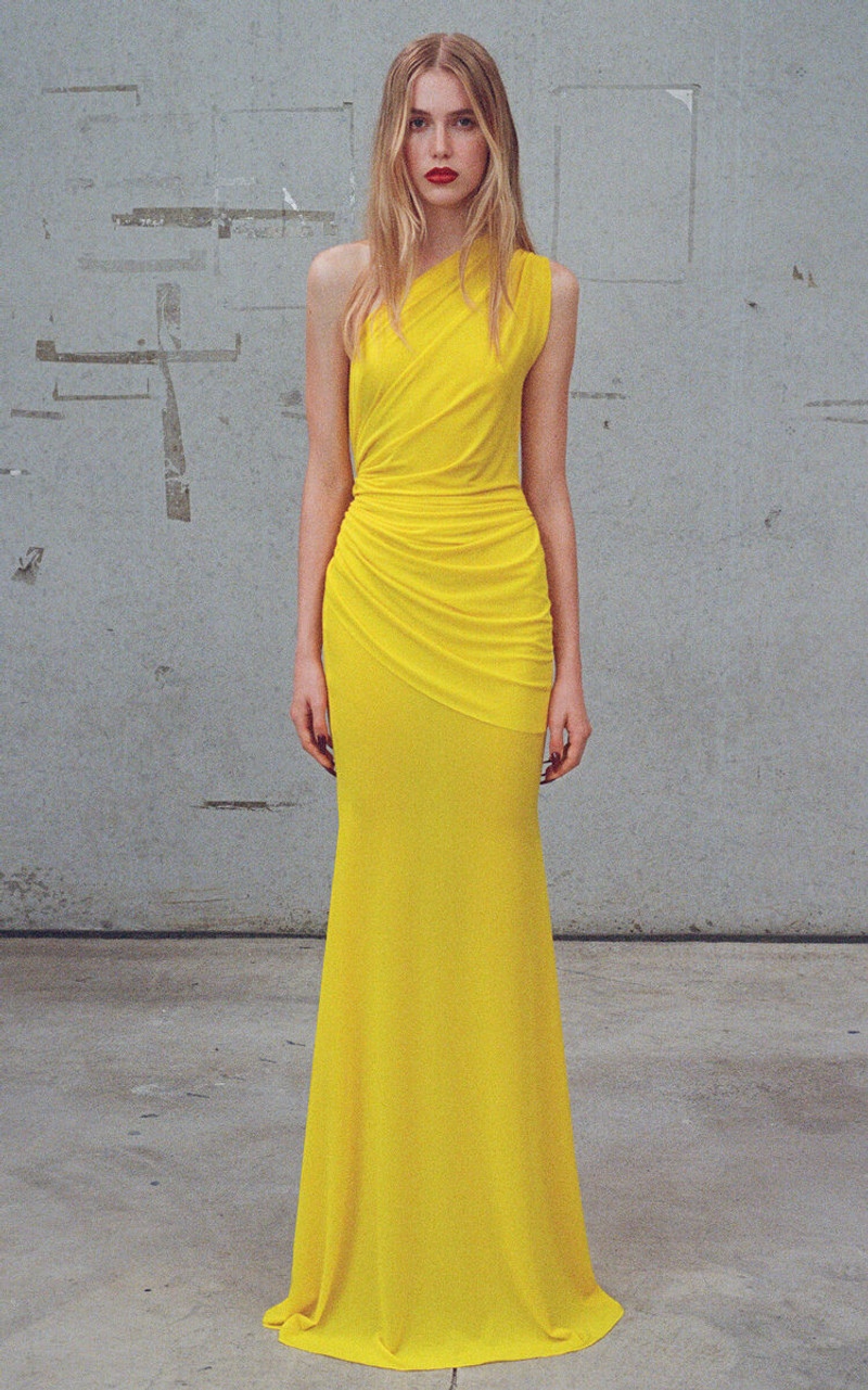 One-Shoulder Crepe Jersey Gown yellow