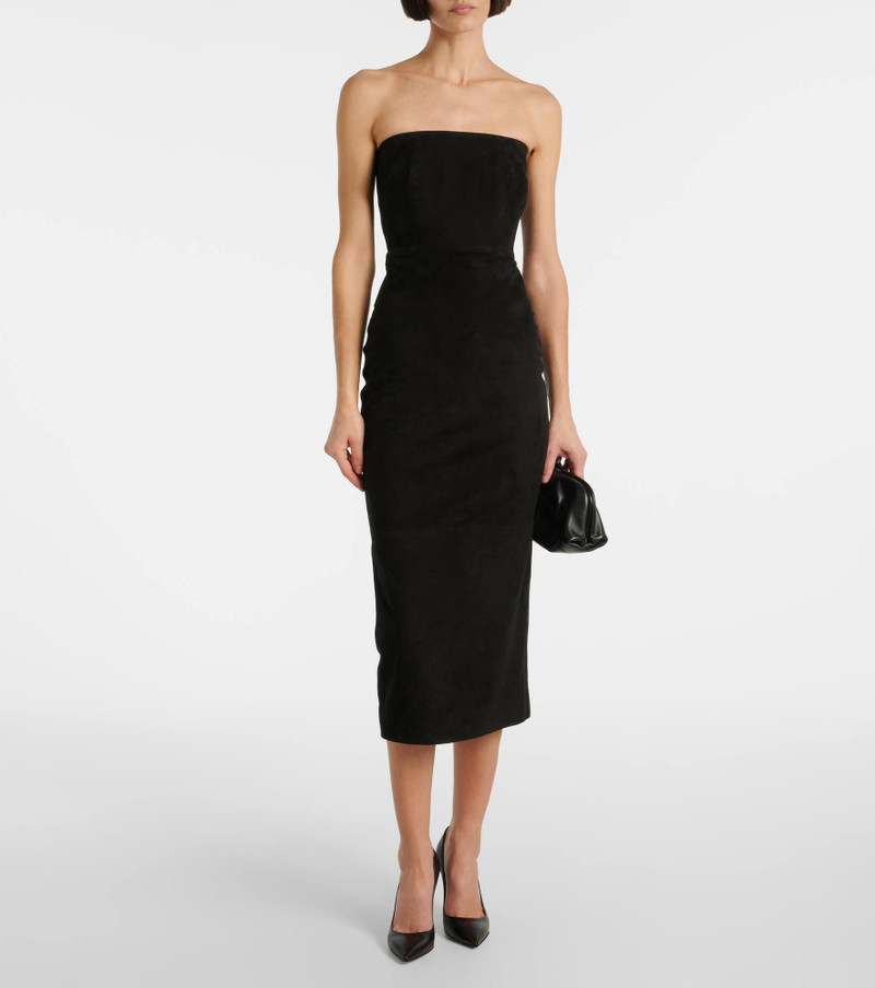 strapless split leather midi dress