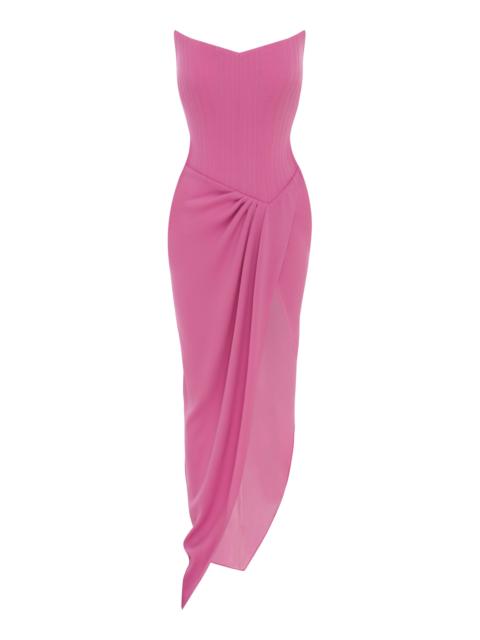 Strapless Draped Satin Crepe Midi Dress pink